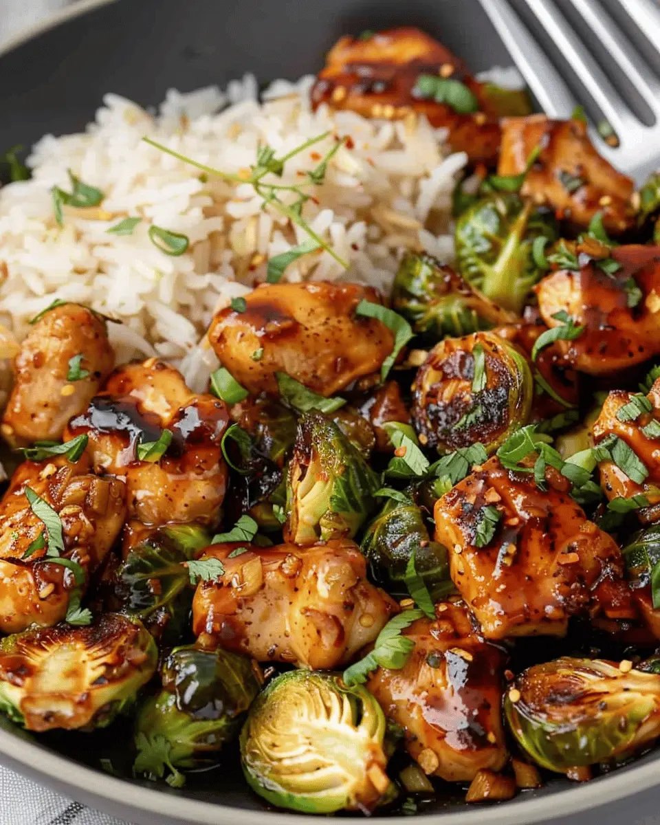The sweet chili glaze is one of the stars of this dish: it strikes a perfect balance between sweetness and spice, creating a flavor bomb that elevates the simple chicken and Brussels sprouts into a fantastic meal. You get a crispy outside and tantalizingly juicy interior with every bite—who knew healthy could taste this good?