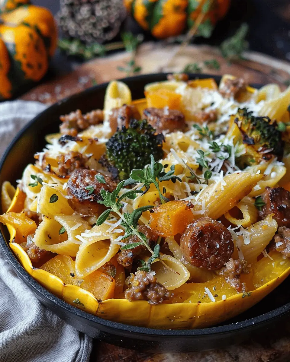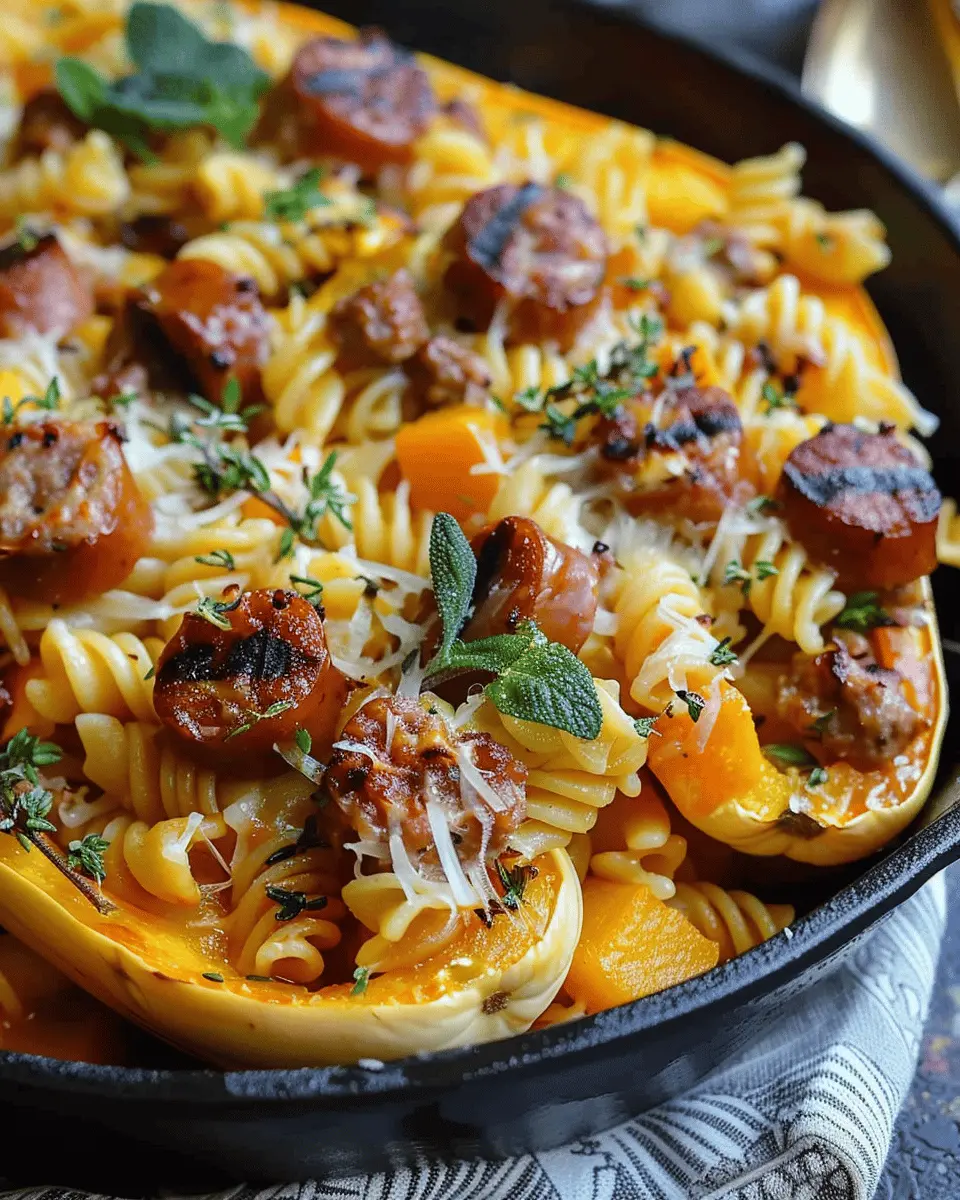 Enjoy a cozy evening with this delicious Autumn Sausage Pasta Squash that combines hearty sausage and tender squash for the perfect fall dish.