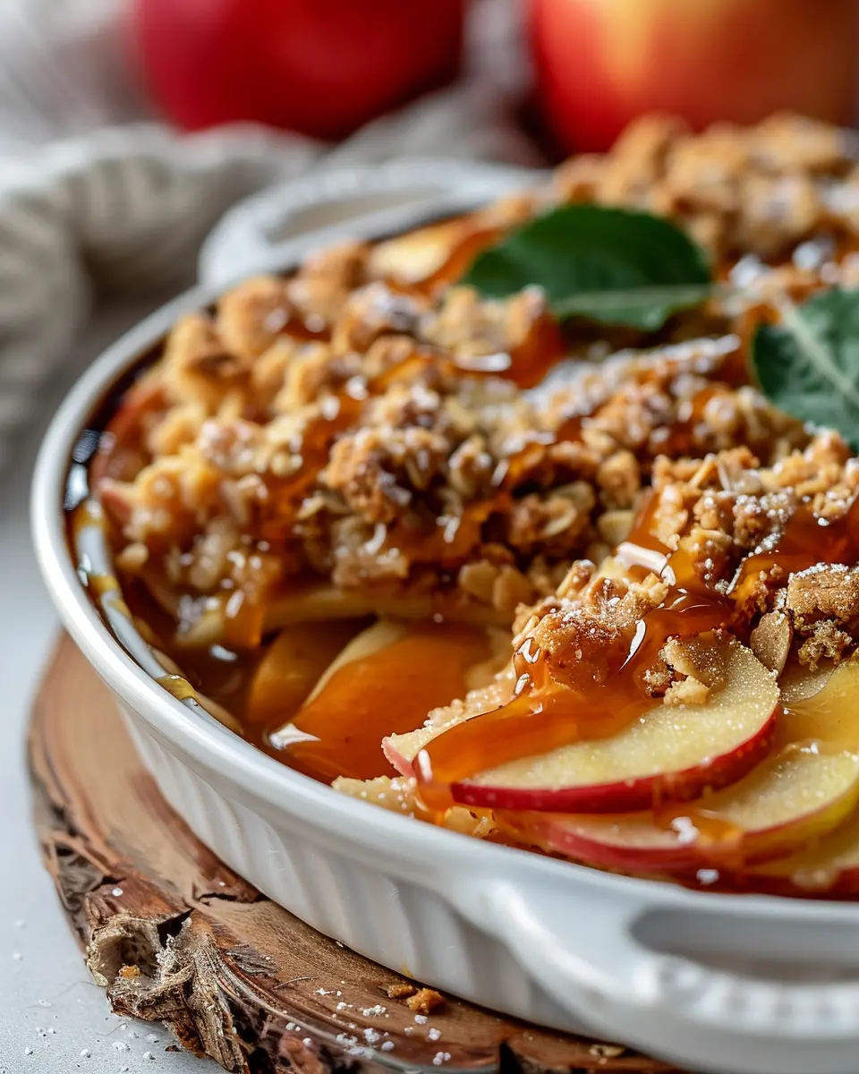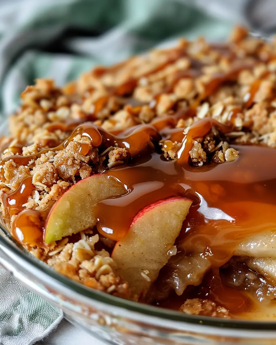 Keywords: Baked Apple Crisp, Caramel Drizzle, Dessert Recipe