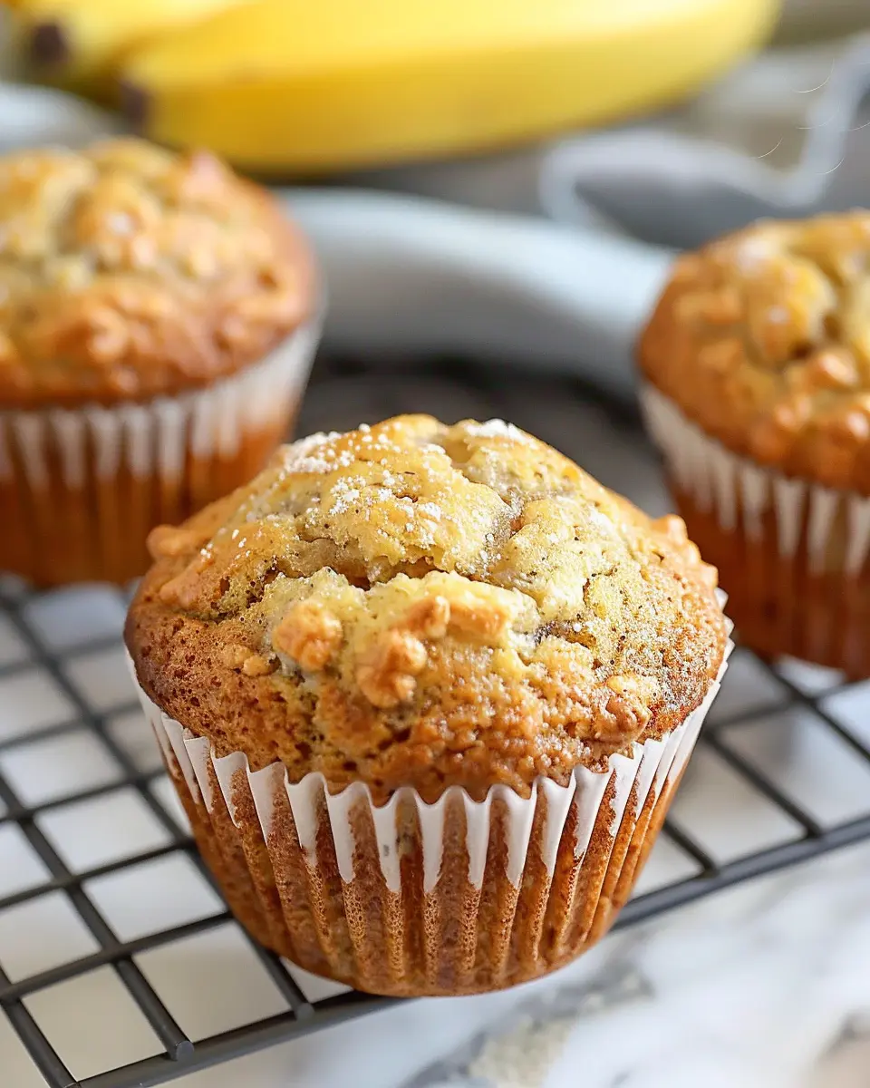 These banana muffins are the perfect way to start your day, combining the sweetness of ripe bananas with a fluffy texture.