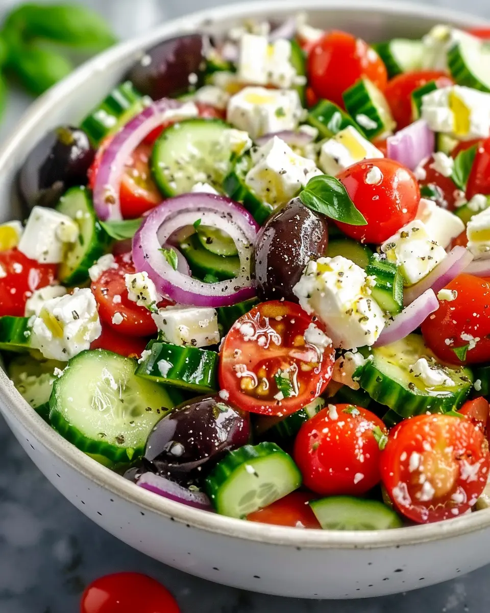 - Fresh Ingredients: With tomatoes, cucumbers, red onions, olives, and feta cheese, this salad bursts with flavor and color. Each bite delivers a dose of vitamins and minerals, perfect for boosting your immunity.