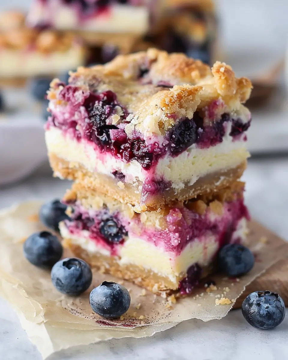 What makes blueberry cream cheese bars so irresistible? First off, the cream cheese layer adds a rich, velvety texture that perfectly balances the fresh, tart blueberries. This harmony of flavors is not just a treat for your taste buds but also a feast for the eyes. Imagine cutting into a golden-brown bar, revealing swirls of creamy filling intermingled with vibrant blueberries. It’s visually inviting and tastes just as good.