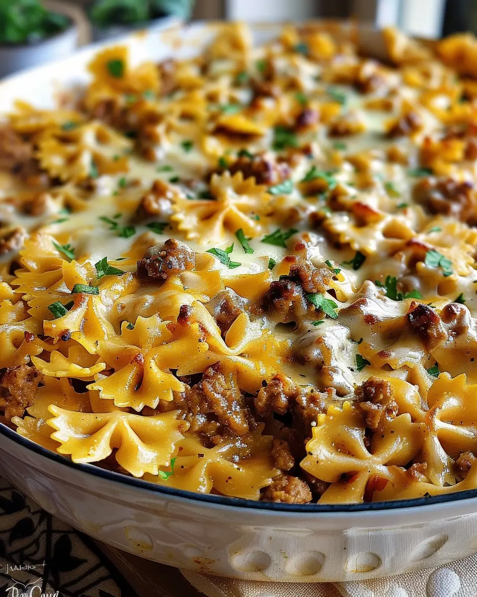 PrintCajun Cream Cheese Alfredo Bowties: Indulgent Spiced Beef Delight