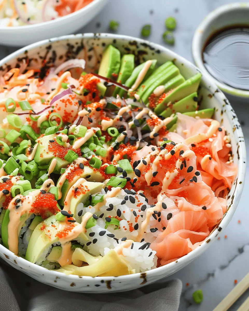 In conclusion, California Roll Sushi Bowls offer a delightful way to enjoy the classic sushi flavors you love while keeping the preparation simple and fun. They are perfect for a quick lunch or a relaxed dinner with friends, bringing together fresh ingredients like avocado, crab, and cucumber. You can even customize these bowls with your favorite toppings—think crunchy seaweed or zesty pickled ginger.