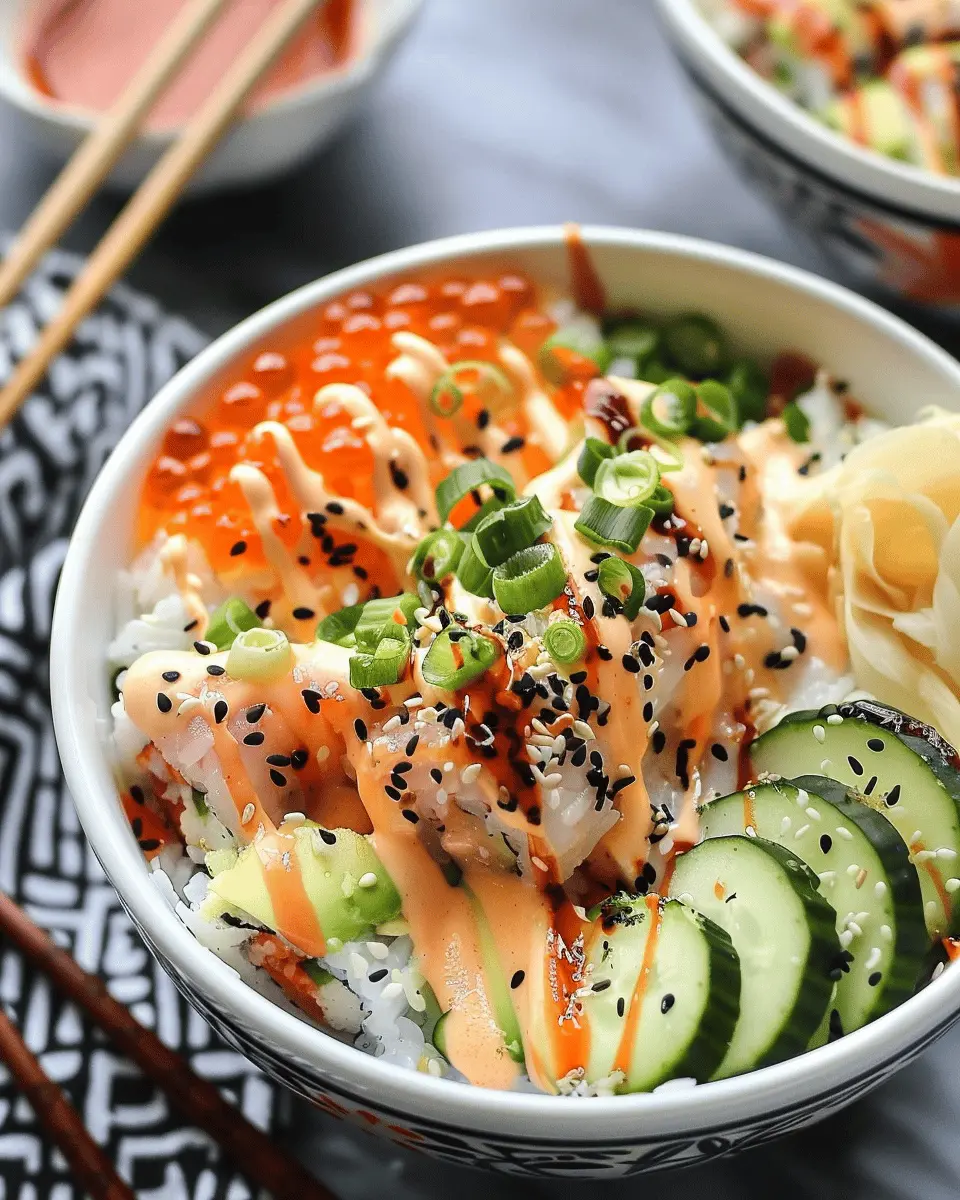 For a fun twist, consider transforming your California Roll Sushi Bowls into a poke-inspired dish. Imagine the contrast of flavors when you add marinated salmon or tuna, along with traditional toppings!
