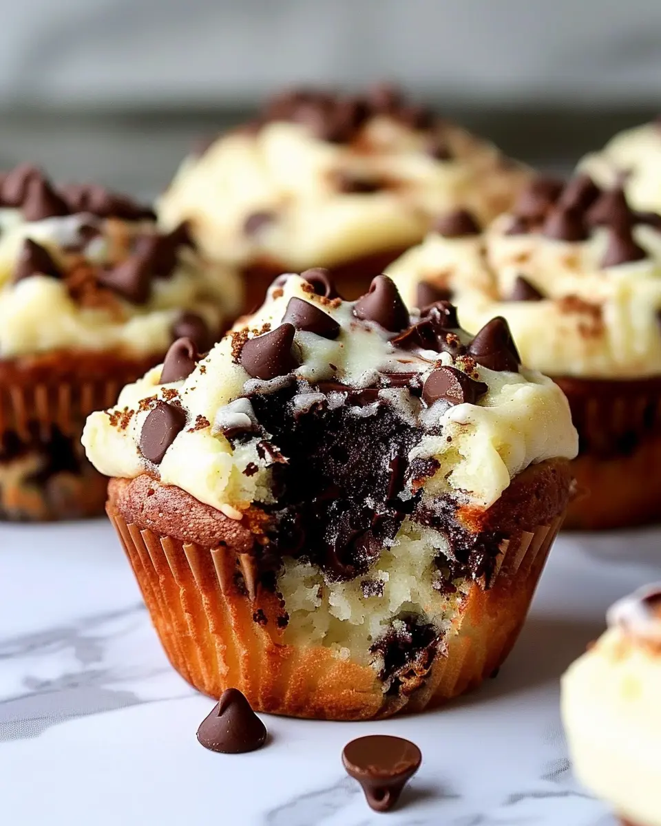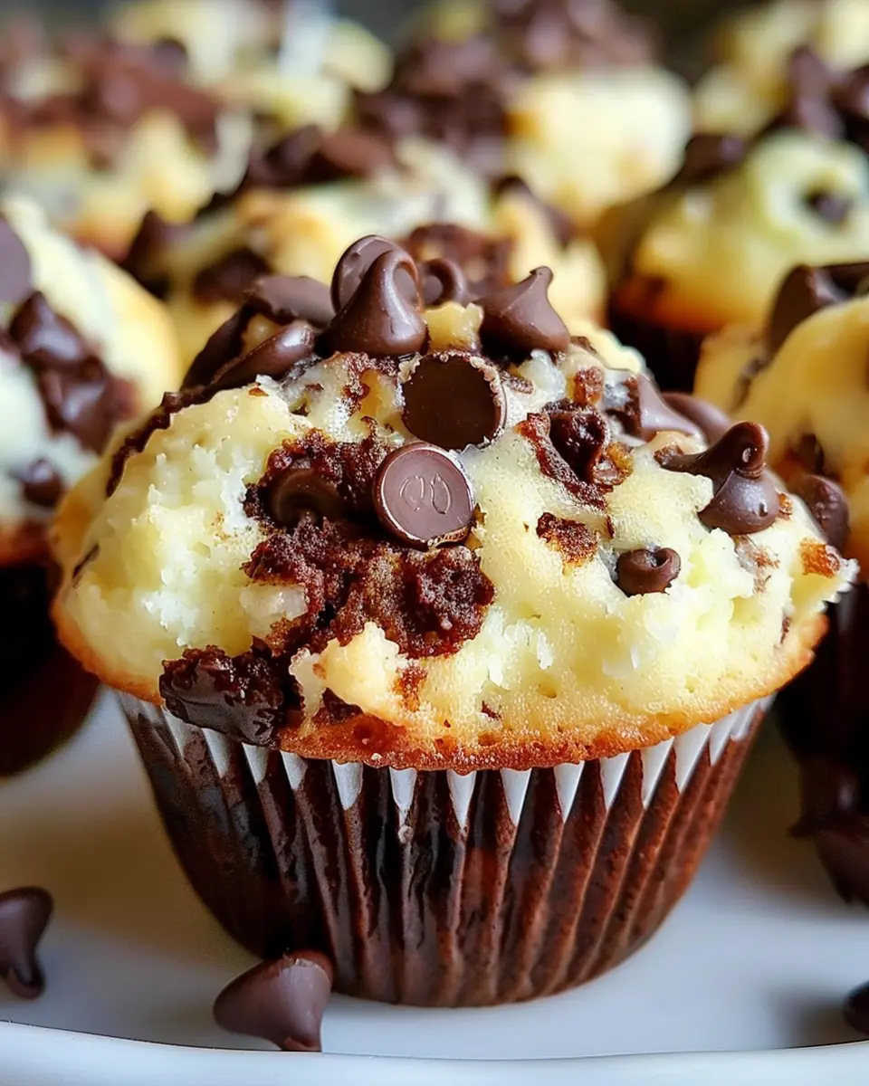 Indulge in these delightful cheesecake chocolate chip muffins that perfectly blend rich cream cheese with sweet chocolate chips.
