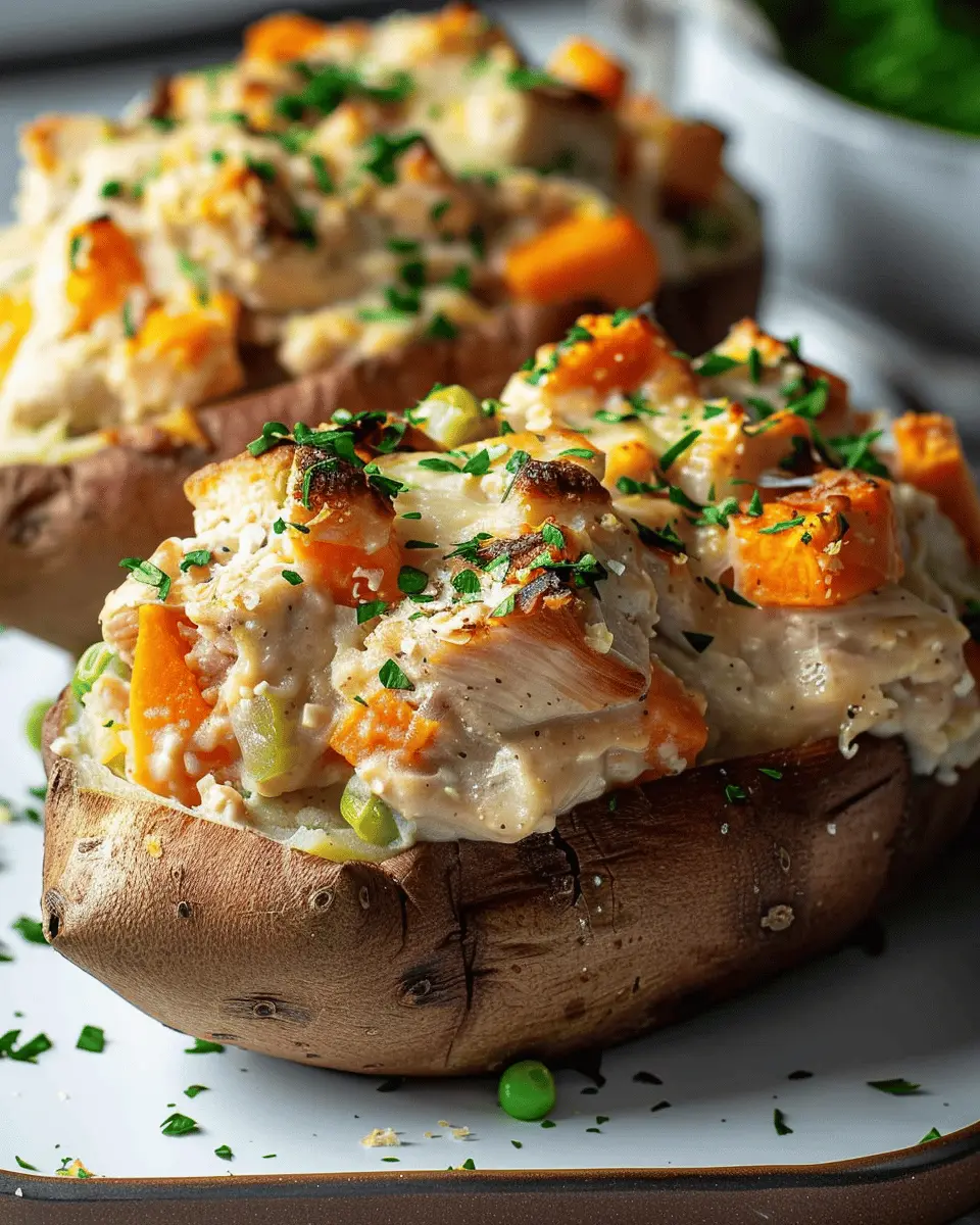 PrintChicken Pot Pie Stuffed Sweet Potatoes: A Cozy, Indulgent Delight