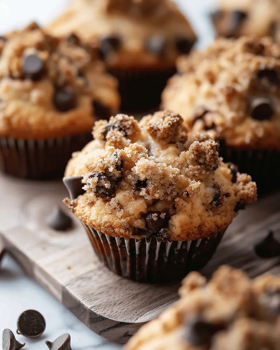 These Chocolate Chip Crumb Cake Muffins are the ultimate indulgent treat, combining the rich flavors of chocolate and the delightful texture of crumb cake.