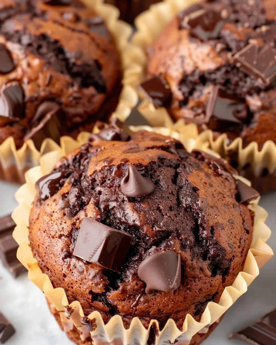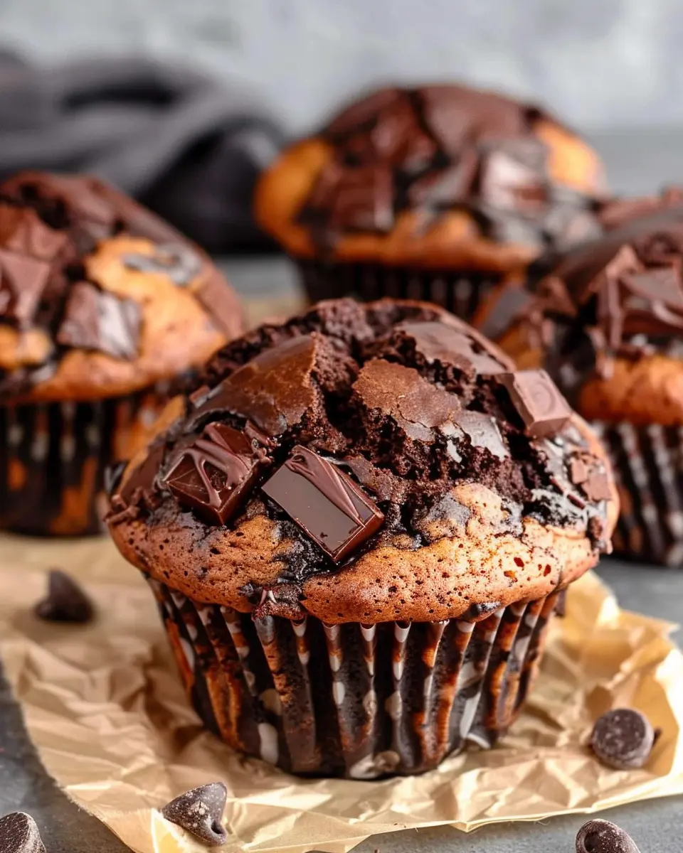 Indulge in these rich and delectable chocolate chunk muffins, perfect for any occasion.