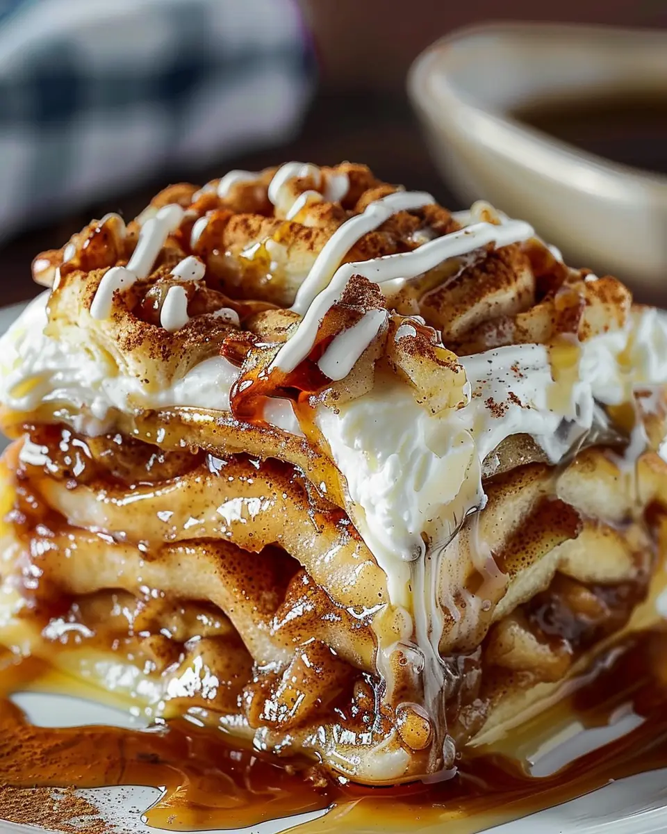 • Caramel Drizzle: A drizzle of rich caramel sauce adds a sweet, gooey touch that complements the cinnamon perfectly. If you’re in a hurry, store-bought caramel works beautifully, or follow a simple recipe for homemade caramel from Simply Recipes.