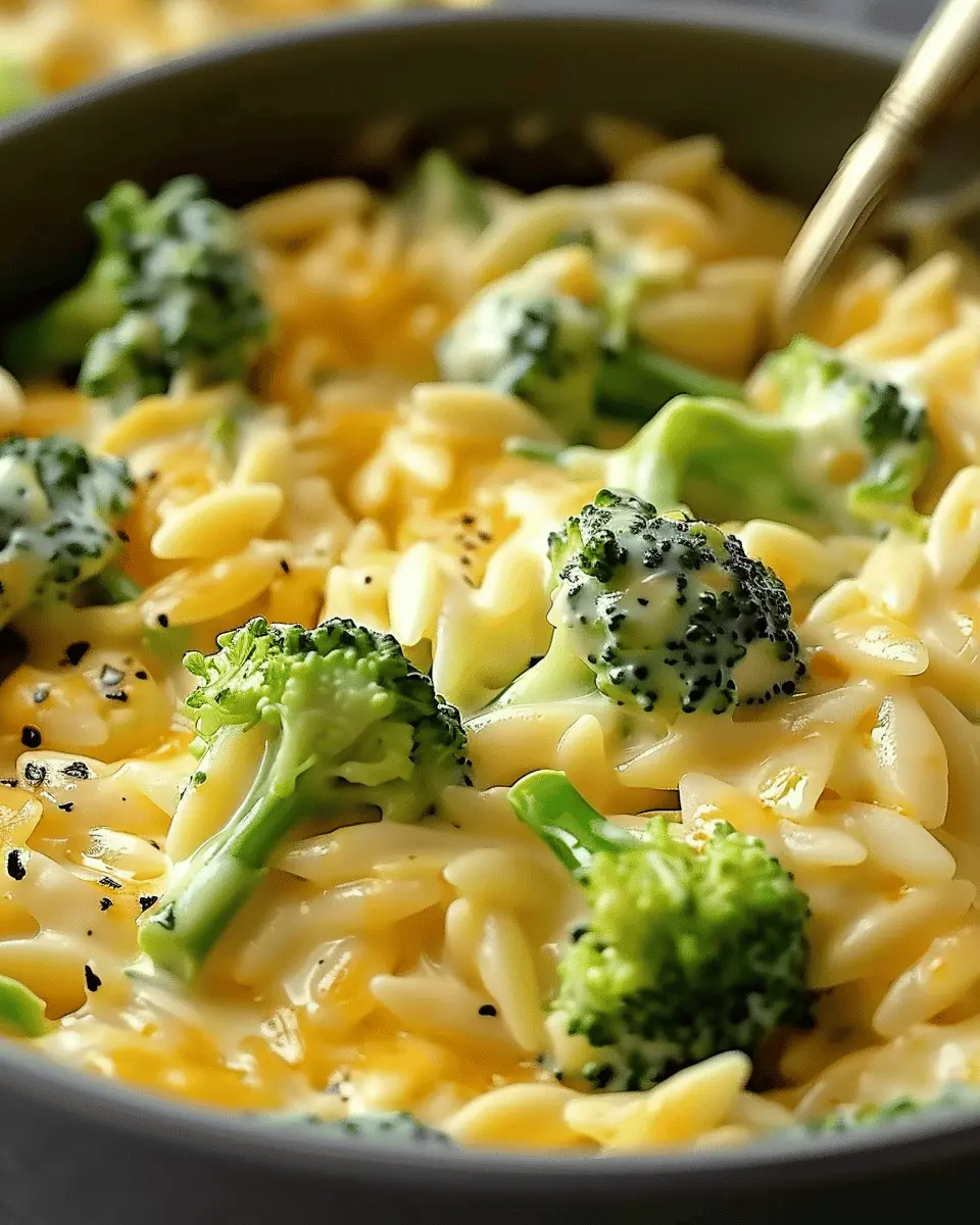 PrintCreamy One-Pot Broccoli Cheddar Orzo: Easy Comfort Food Delight