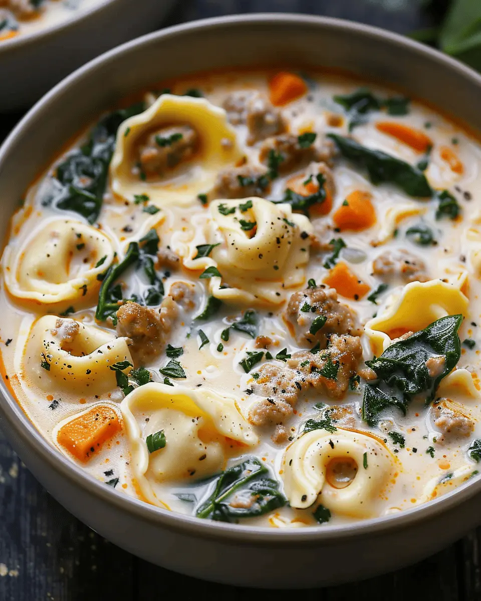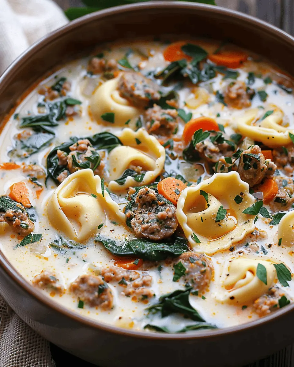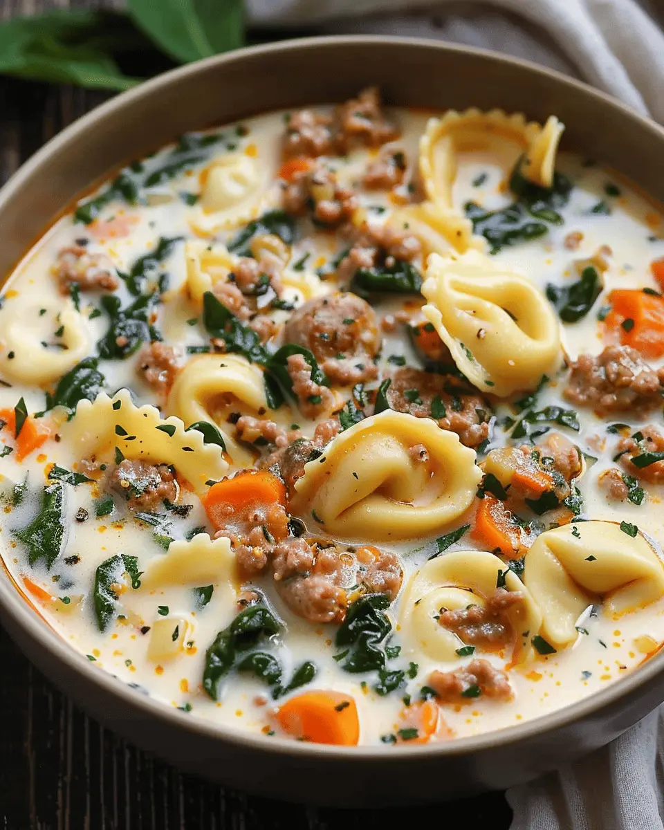 A rich and flavorful soup that is perfect for any occasion, combining creamy tortellini and savory sausage.