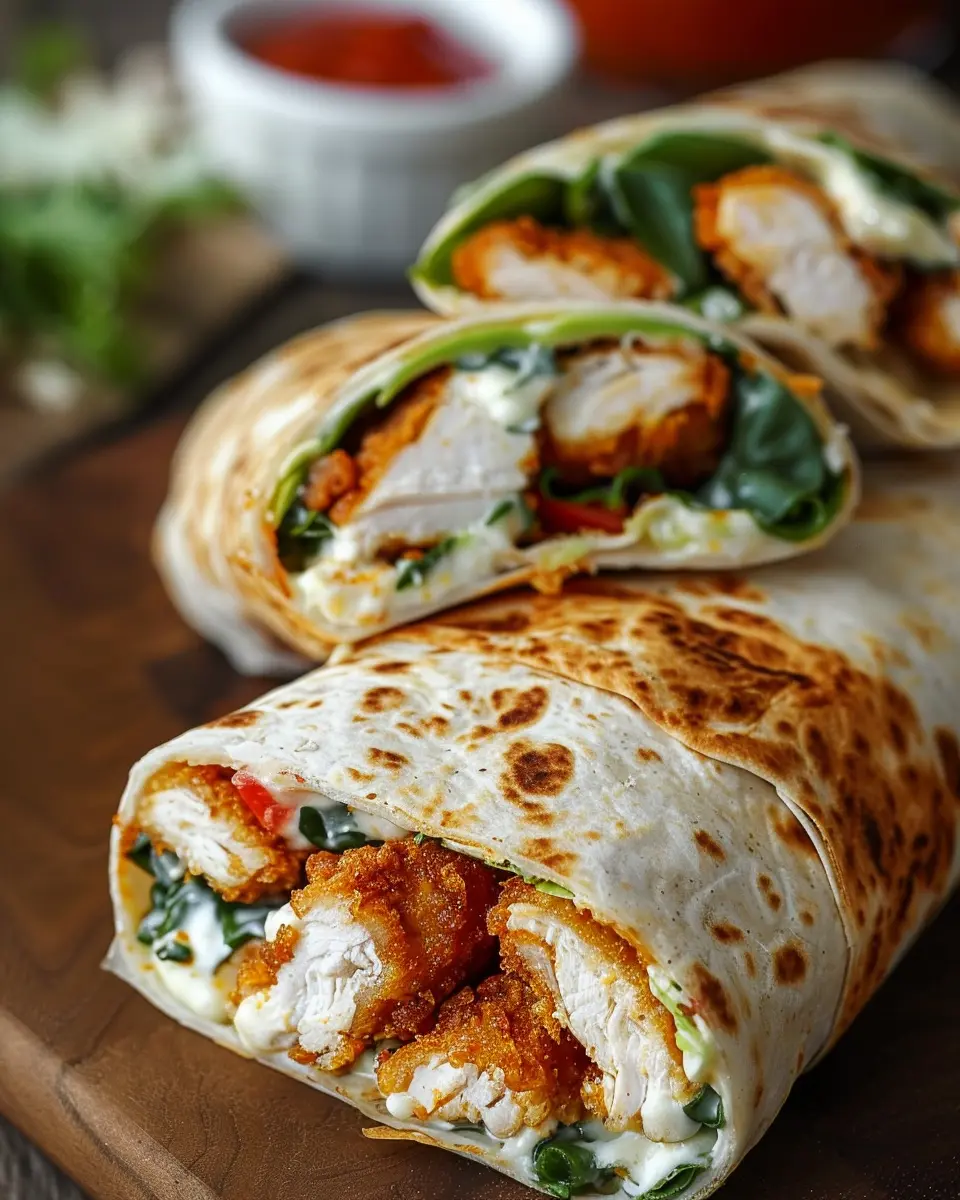 - Build your wrap: Start with a tortilla, layer on your crispy chicken, add a generous handful of mozzarella, and any other toppings you fancy. You can also spread a bit of pesto or sauce on the tortilla for extra flavor.