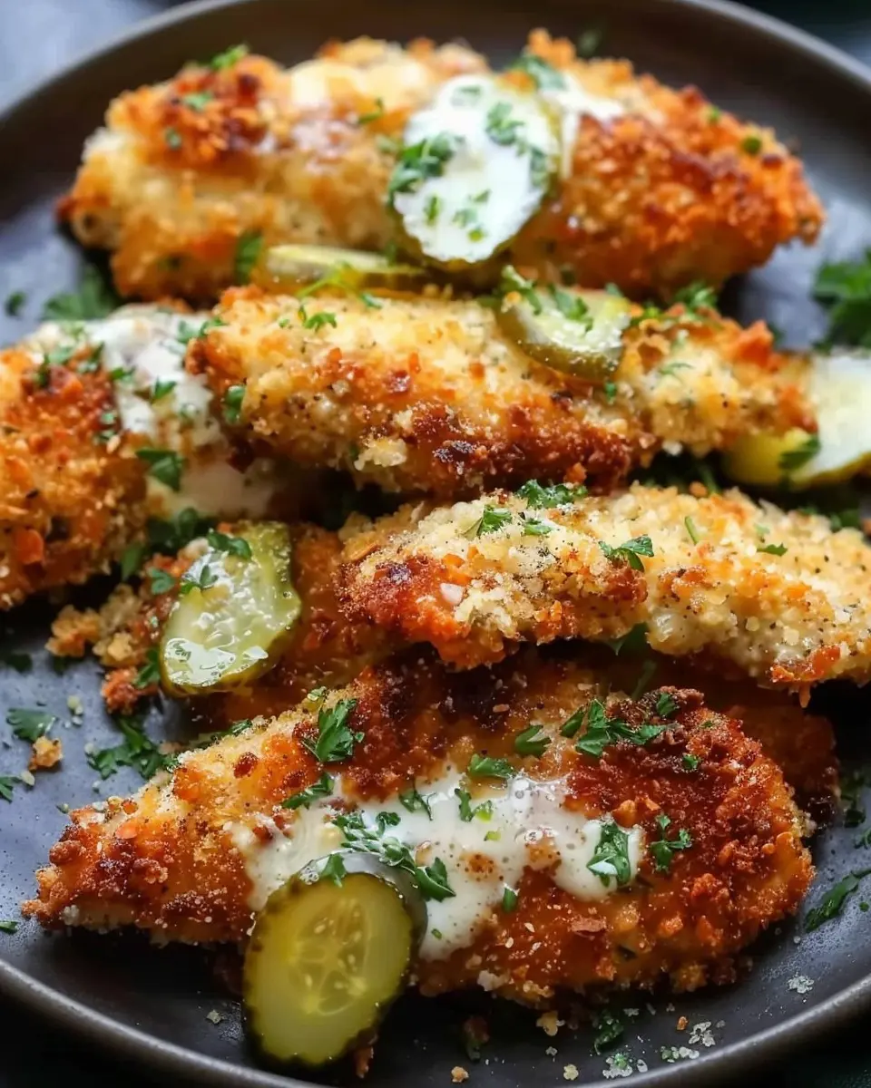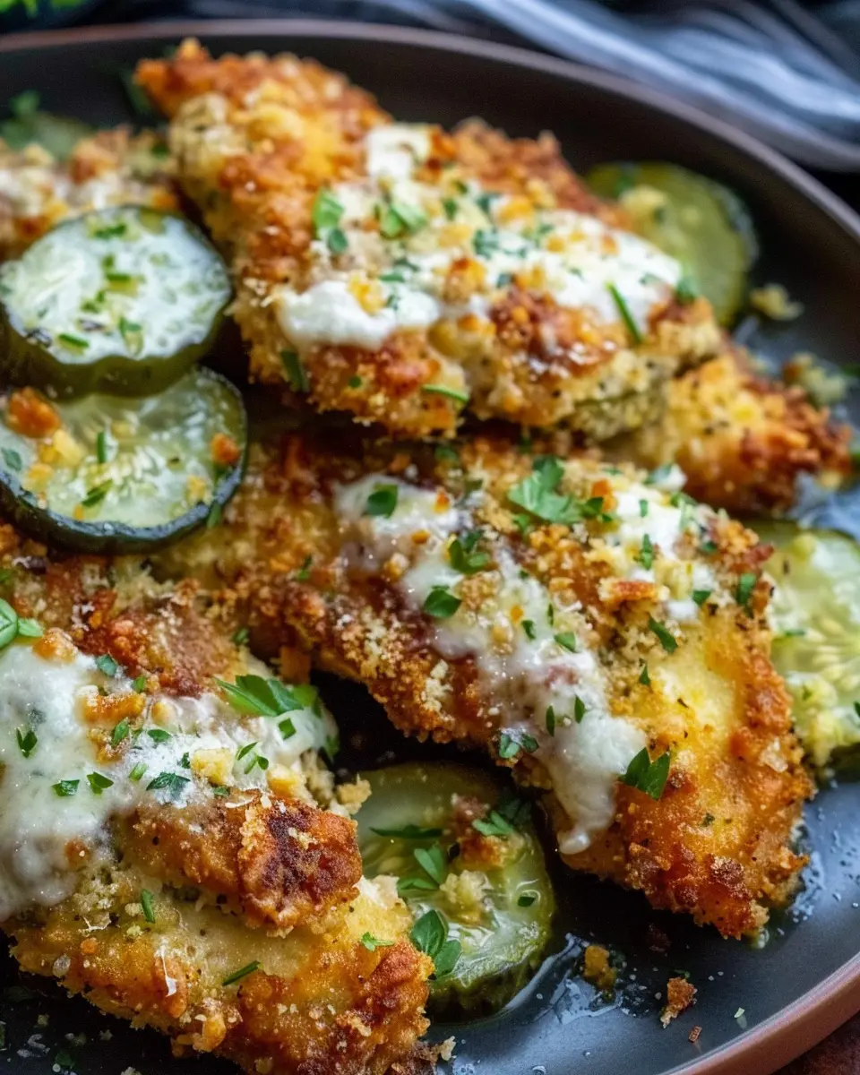 Before you jump into cooking, take a moment to set the stage for a successful culinary adventure. Preheat your oven to 375°F (190°C). A hot oven right from the get-go is essential for crispiness! While it’s warming up, gather your ingredients—chicken breasts, dill pickles, Parmesan cheese, and Greek yogurt for the sauce. Having everything within arm’s reach not only makes the process smoother but also keeps you focused and excited. A tidy workspace also allows for creative cooking. Trust me, organization can greatly enhance your cooking experience.