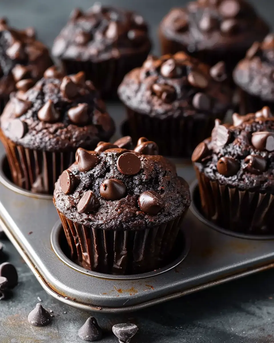 Indulge in these rich and delicious double chocolate chip muffins, perfect for any chocolate lover!