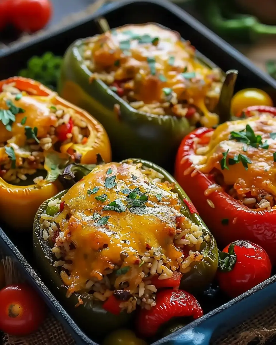 - Bake: Pop them in the oven for about 30–35 minutes. You’ll know they’re done when the peppers are tender and the filling is hot.