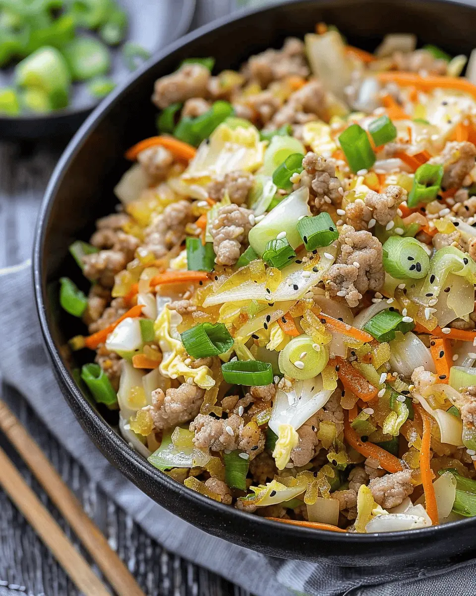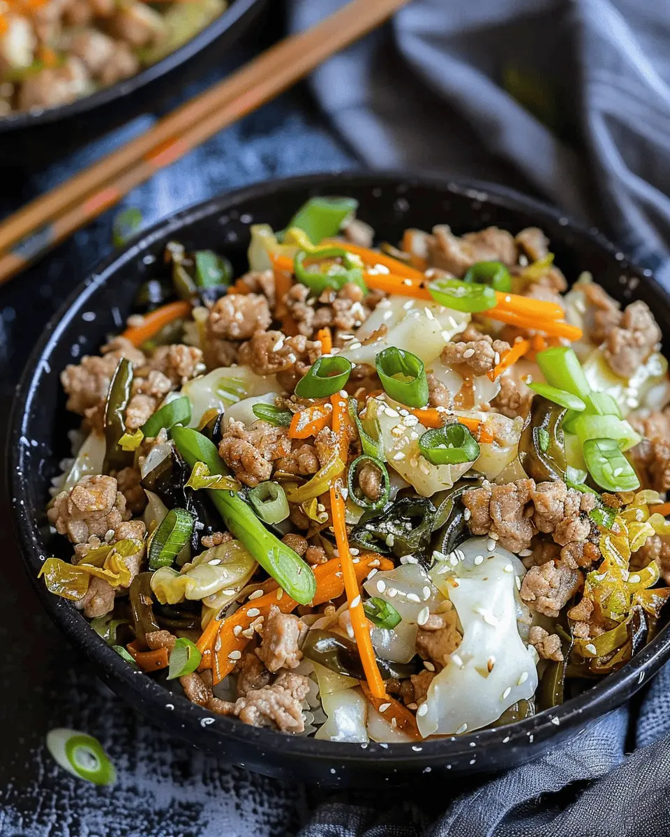 Making a scrumptious Egg Roll in a Bowl is an excellent way to relish the flavors of traditional egg rolls without the fuss of wrapping them. This dish is not only flavorful but also quick to prepare, making it perfect for busy weeknights. Here’s a step-by-step guide to get you on your way to a delicious meal.