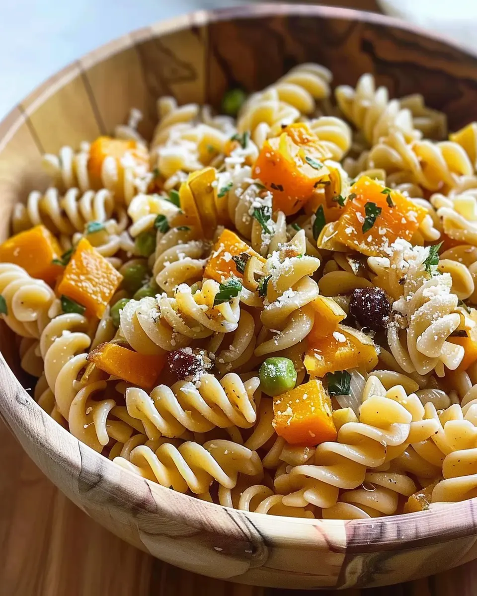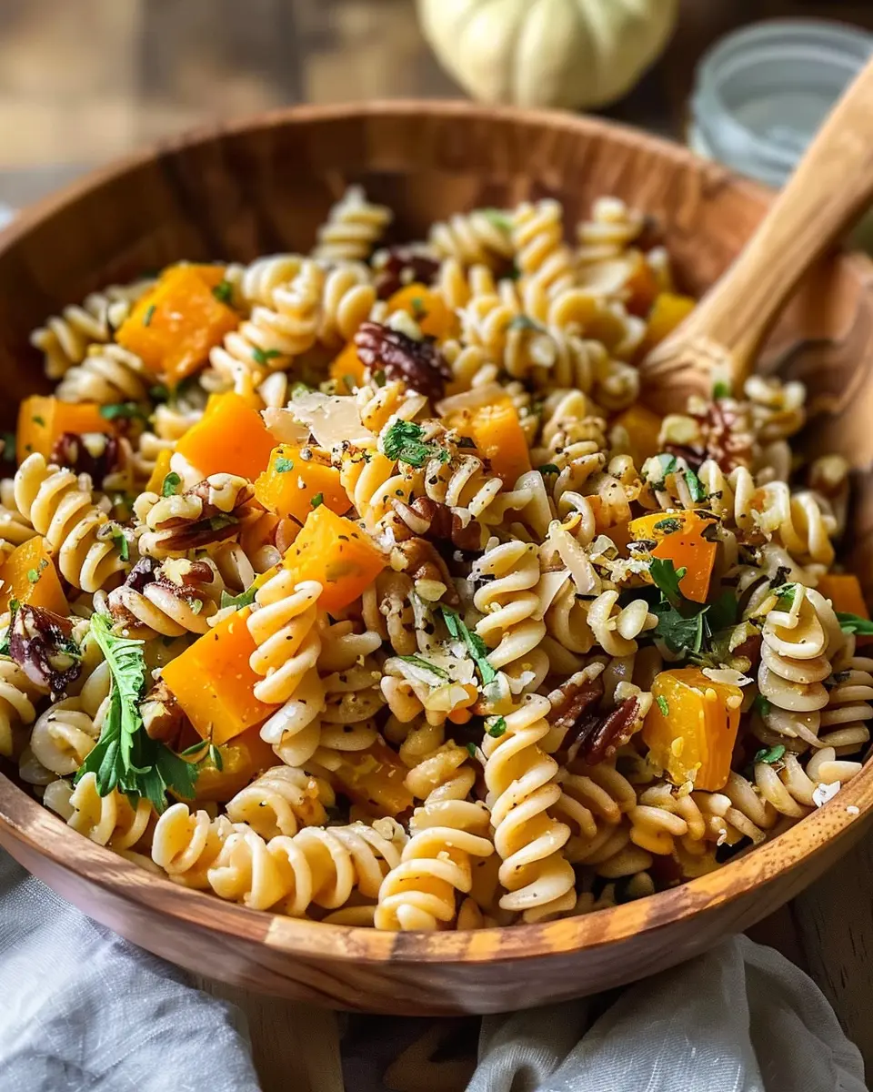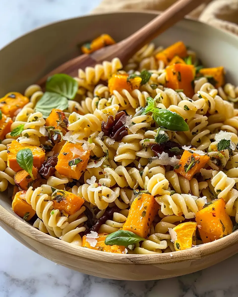 A delightful fall pasta salad featuring roasted butternut squash, perfect for cozy gatherings.