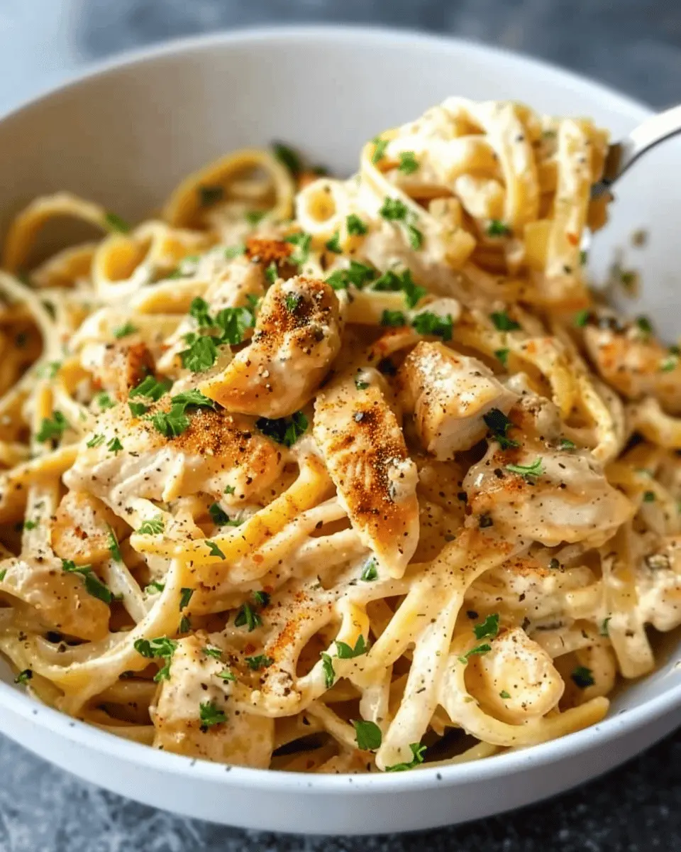A sprinkle of chopped fresh parsley or sliced green onions not only enhances the appearance of your Five-Ingredient Creamy Cajun Chicken Pasta but also adds a fresh flavor pop. A few grated parmesan curls on top can also be a delightful touch.