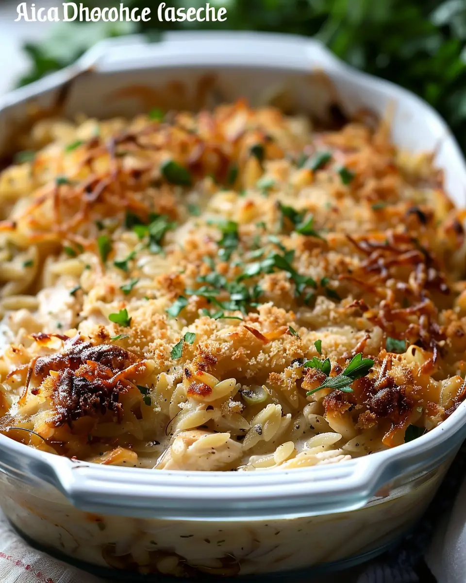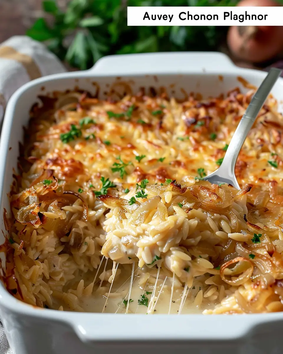 PrintFrench Onion Chicken Orzo Casserole: Indulgent Comfort Food Delights