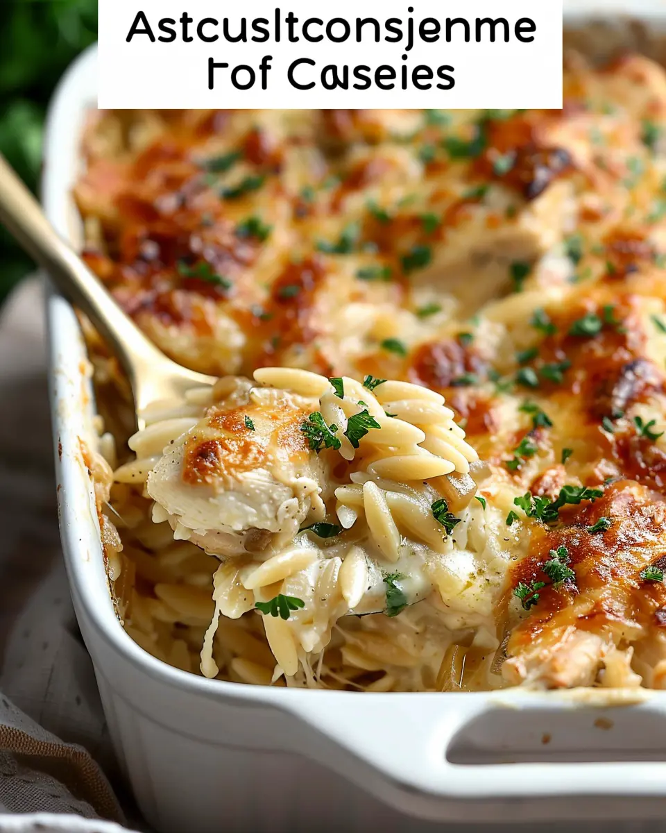 With these ingredients on hand, your French Onion Chicken Orzo Casserole will be a hit at your next gathering! For additional tips on preparation, check out resources like The Spruce Eats or AllRecipes. Happy cooking!