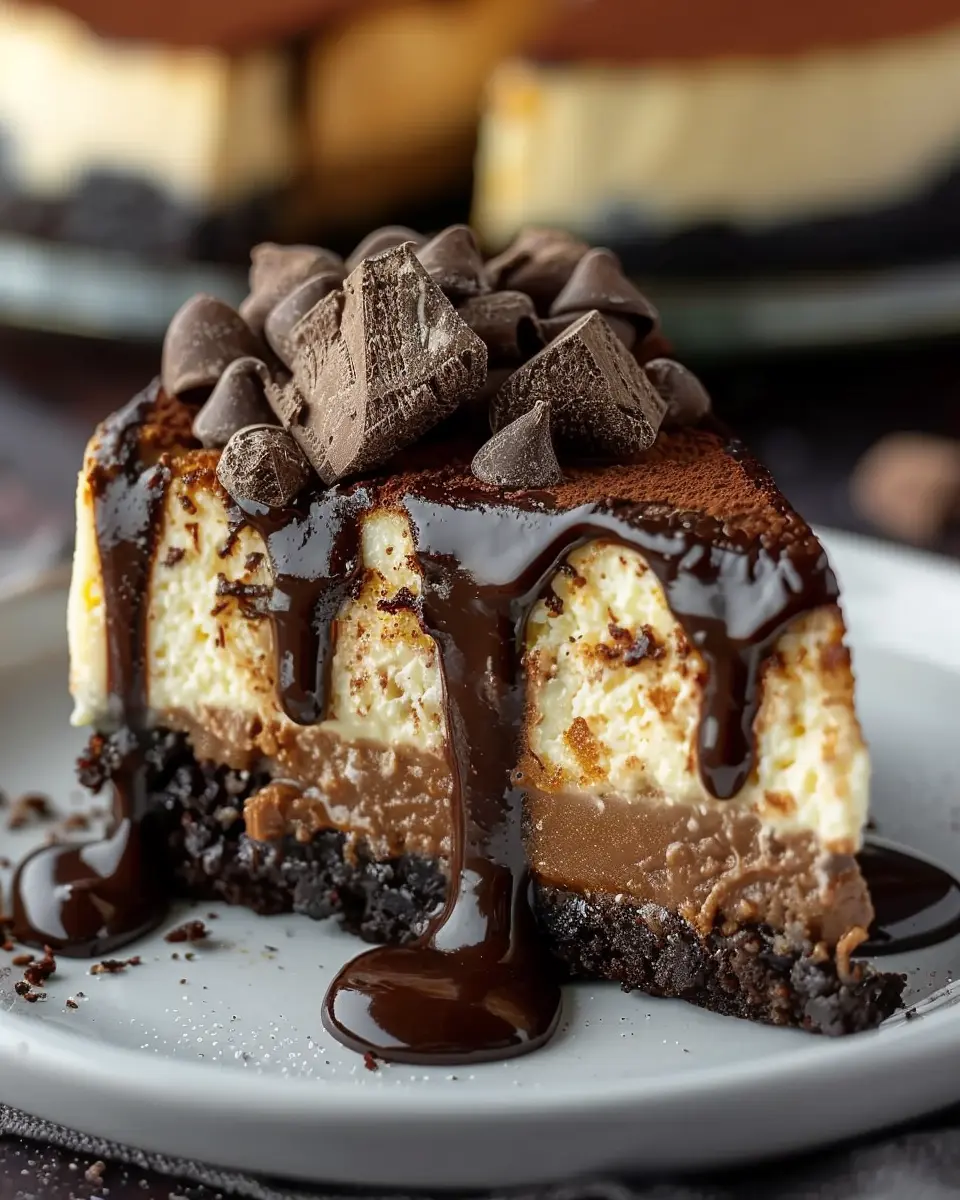 Many people enjoy pairing rich desserts like this with a cup of coffee or a glass of non-alcoholic sparkling beverage, which can enhance the flavors even further. Did you know that coffee can complement chocolate beautifully? It’s a popular trick that some of the best bakers swear by. Not to mention, the cheesecake’s tangy creaminess contrasts wonderfully with the deep flavors of the chocolate.