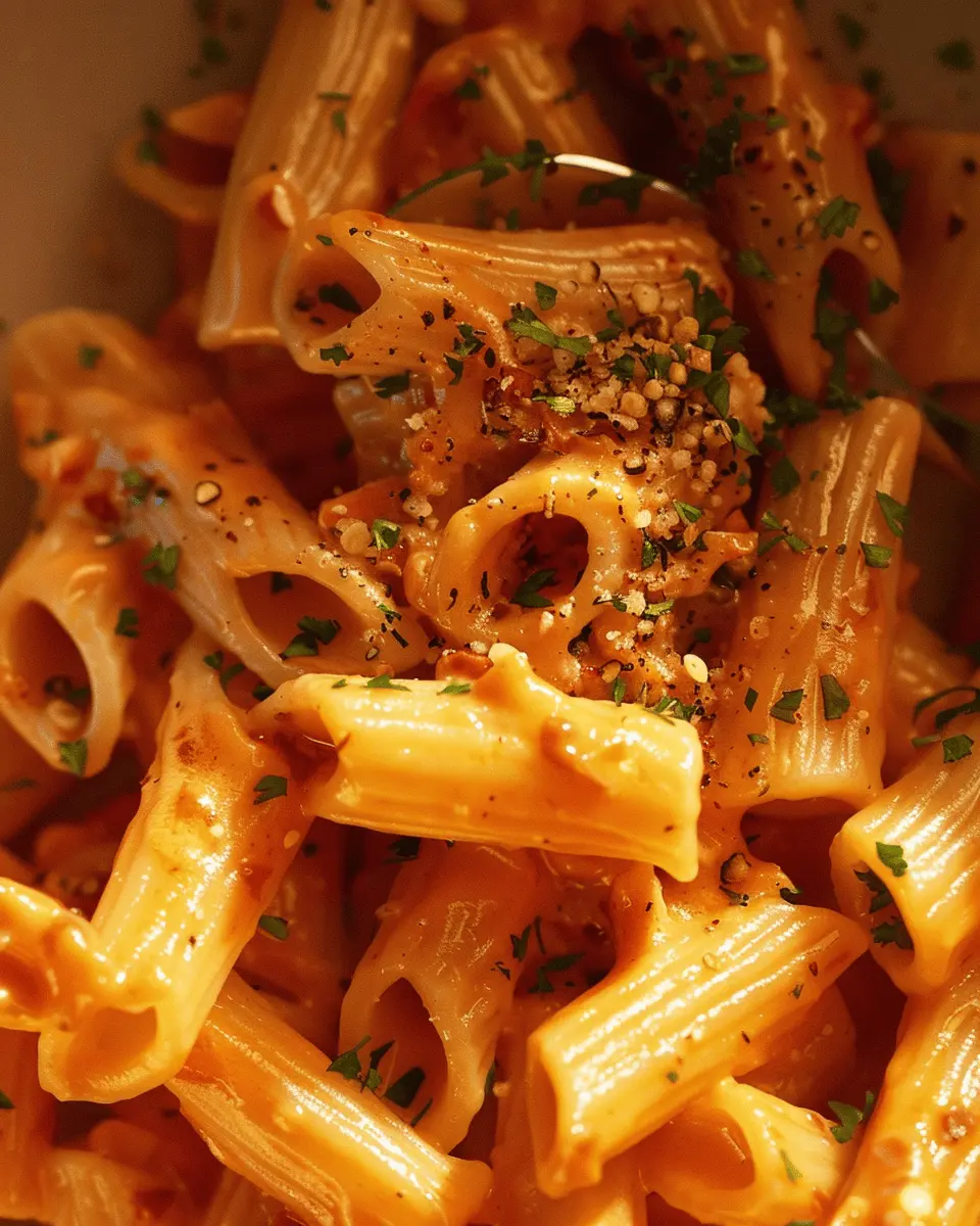 Once your sauce has reached creamy perfection, it’s time to bring your Gigi Hadid Pasta to life. Drain the pasta (reserve a bit of the cooking water if needed) and gradually add it to the skillet with the sauce. Toss everything together to coat the pasta in that rich mixture. If the sauce feels too thick, don’t hesitate to add a splash of the reserved pasta water to loosen it up.