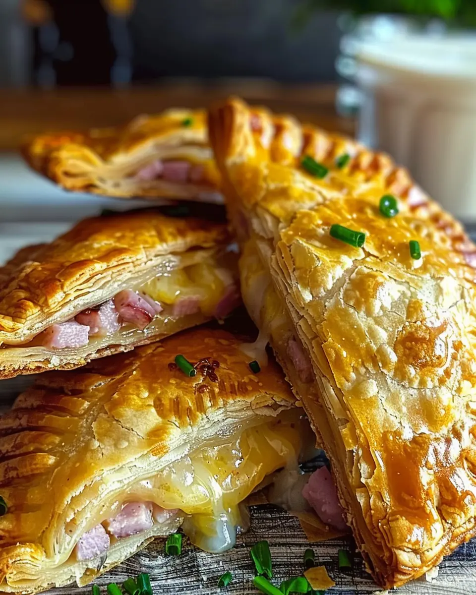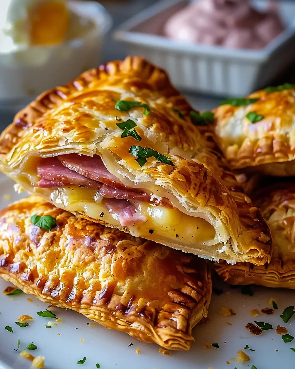 A delicious and convenient breakfast option featuring savory ham and cheese wrapped in flaky pastry.