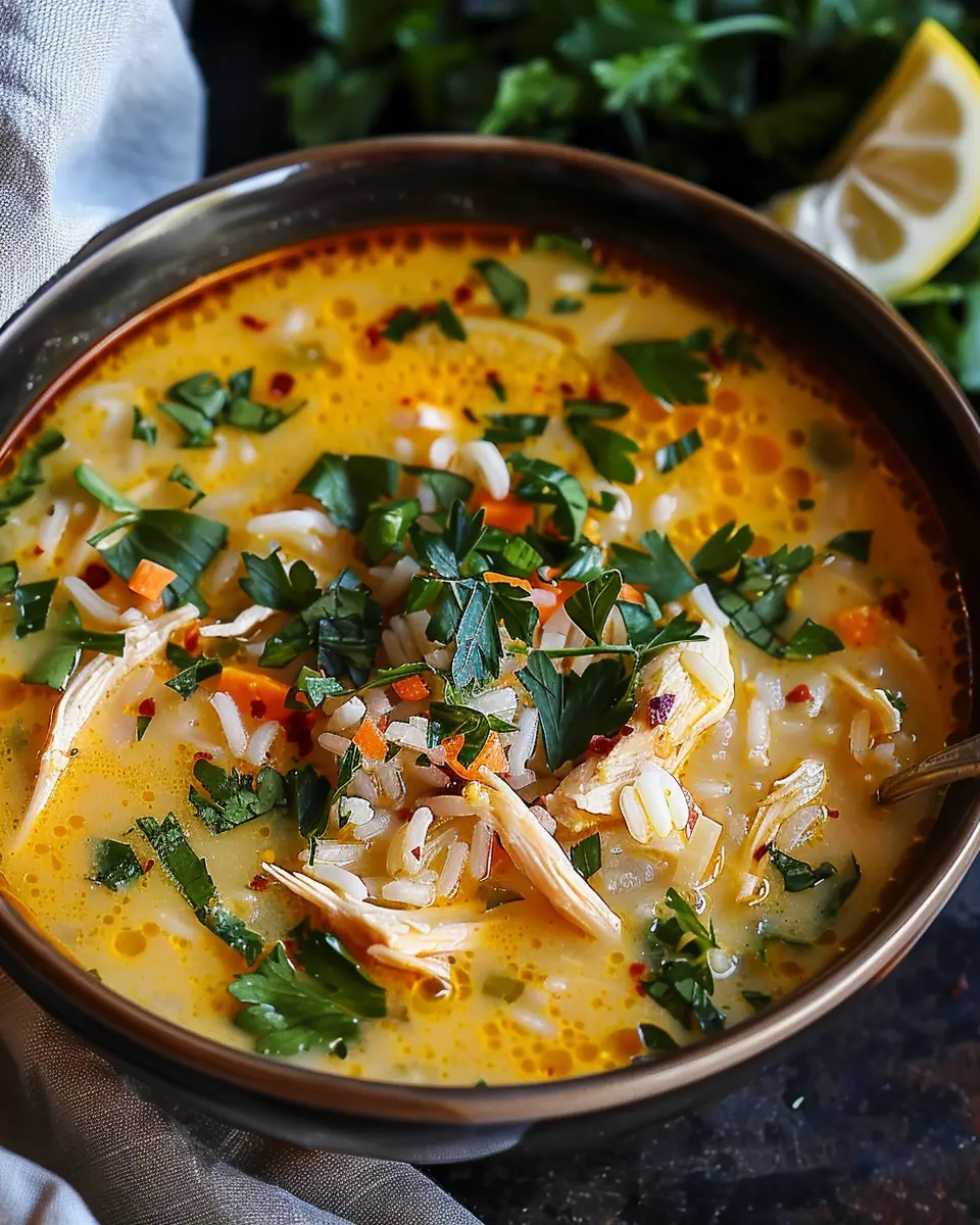 Garnishing your Lemon Ginger Turmeric Chicken and Rice Soup not only boosts its visual appeal but also adds layers of flavor: