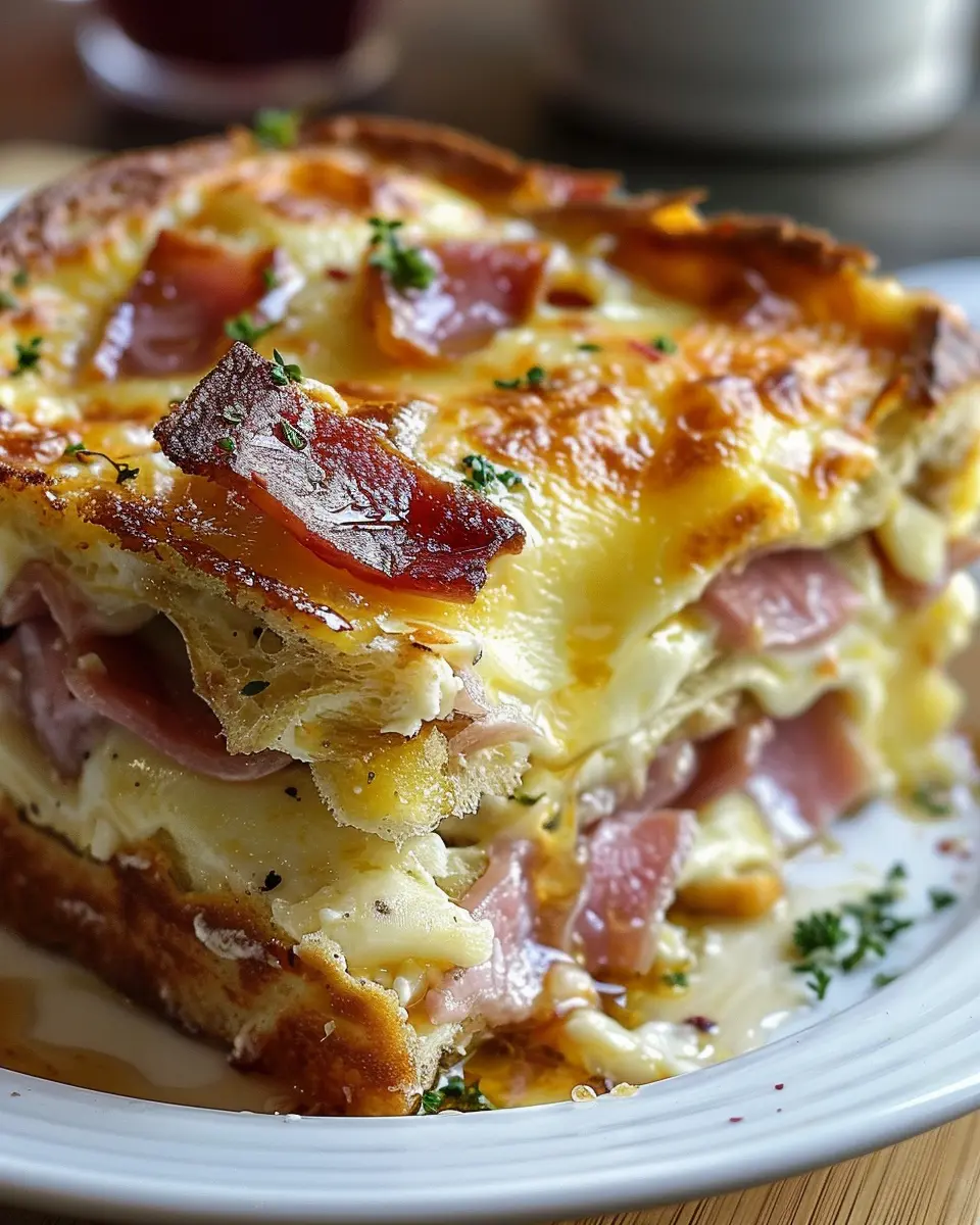 PrintMonte Cristo Breakfast Casserole: Indulgent Turkey Bacon Delight