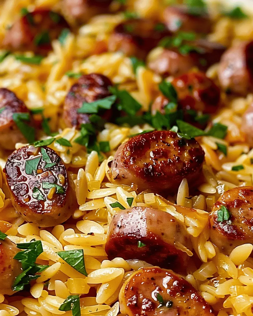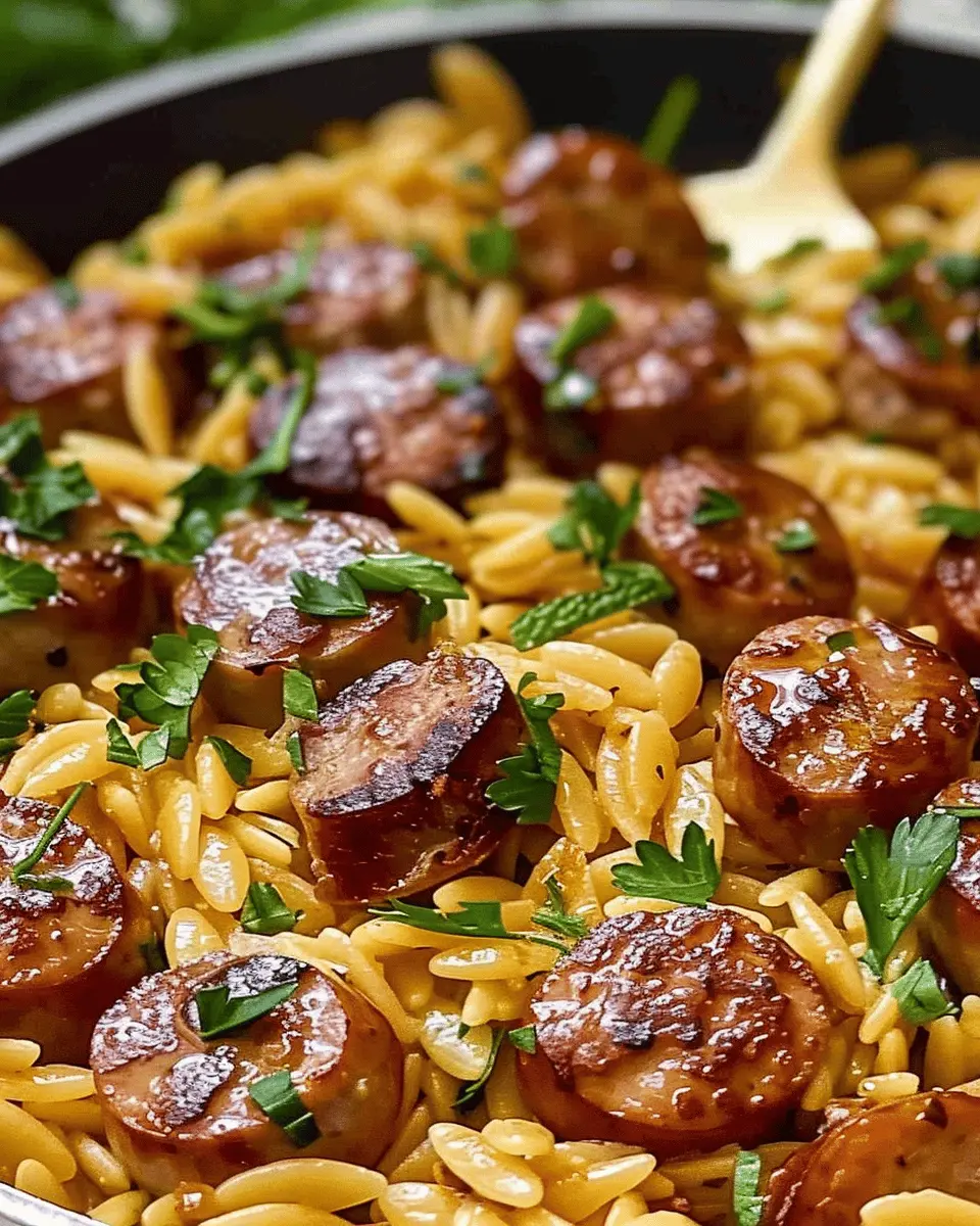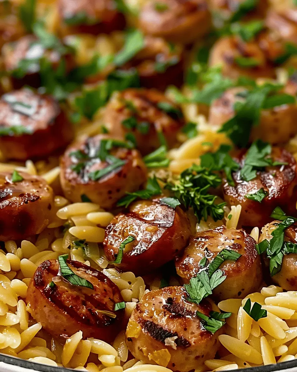 Imagine coming home to the mouthwatering aroma of garlic butter and savory sausages wafting through your kitchen. This dish doesn’t just taste great; the preparation is a breeze! Just toss everything in one pot, stir, and let the magic happen. Plus, the hearty combination of orzo and sausage means you’re not just eating; you’re savoring a comforting meal that feels like it took hours to prepare.