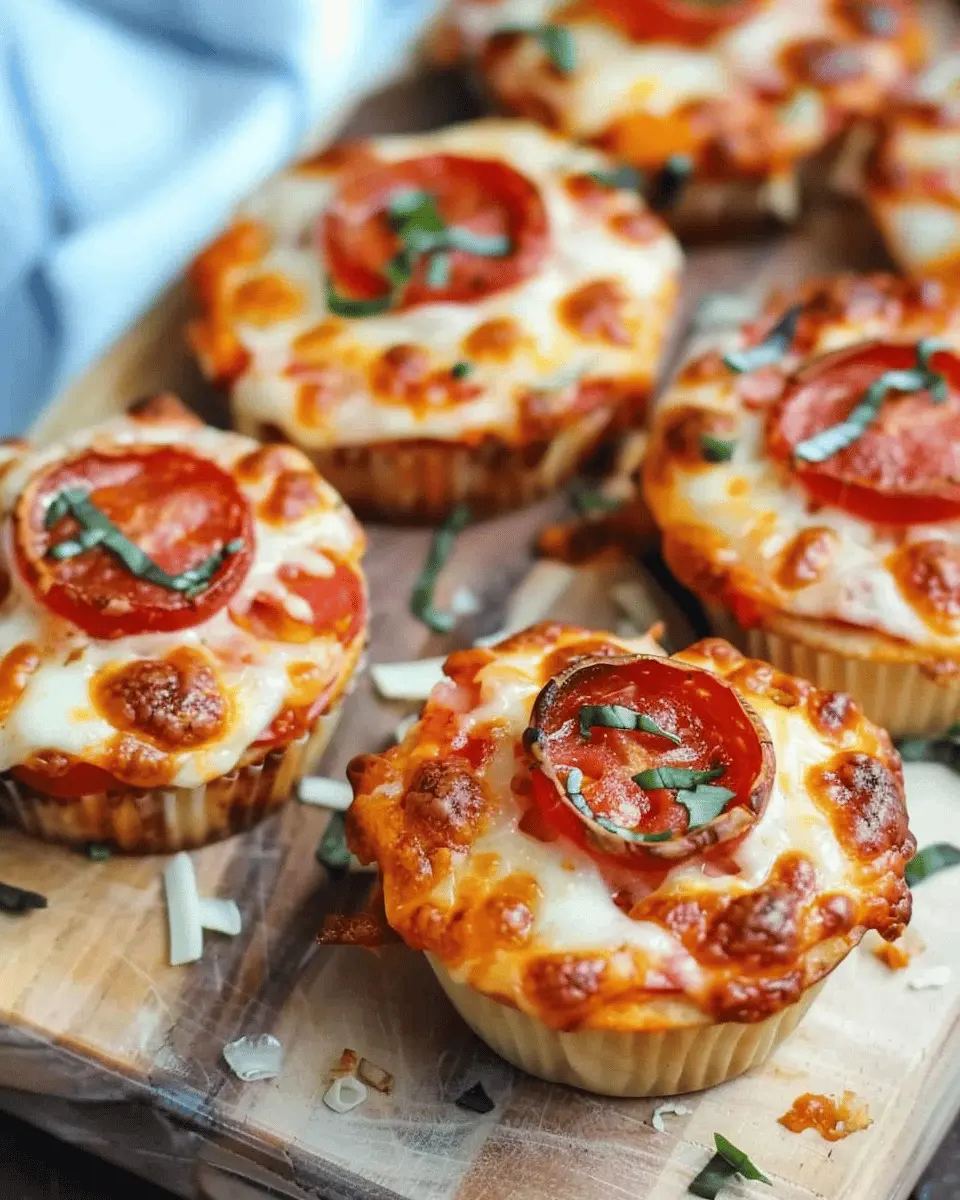 After they cool slightly, gently lift them out using a fork or spatula. Serve them warm, perhaps with extra pizza sauce on the side for dipping. These pizza cupcakes are perfect for sharing at a casual get-together or enjoying as a fun weeknight dinner. Pair them with a simple salad or some garlic bread, and you have yourself a meal that’s sure to impress!