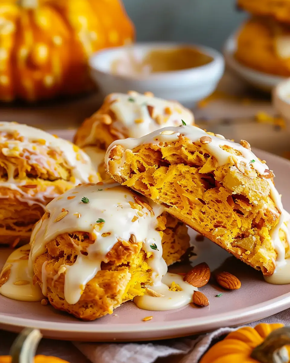 • Maple glaze: Drizzle a simple maple syrup and powdered sugar glaze over your scones for a sweet finish that complements the pumpkin flavor beautifully.