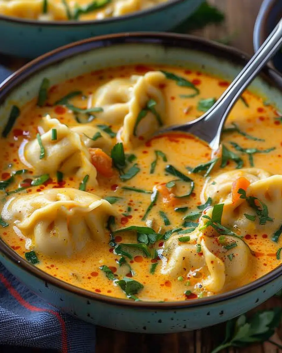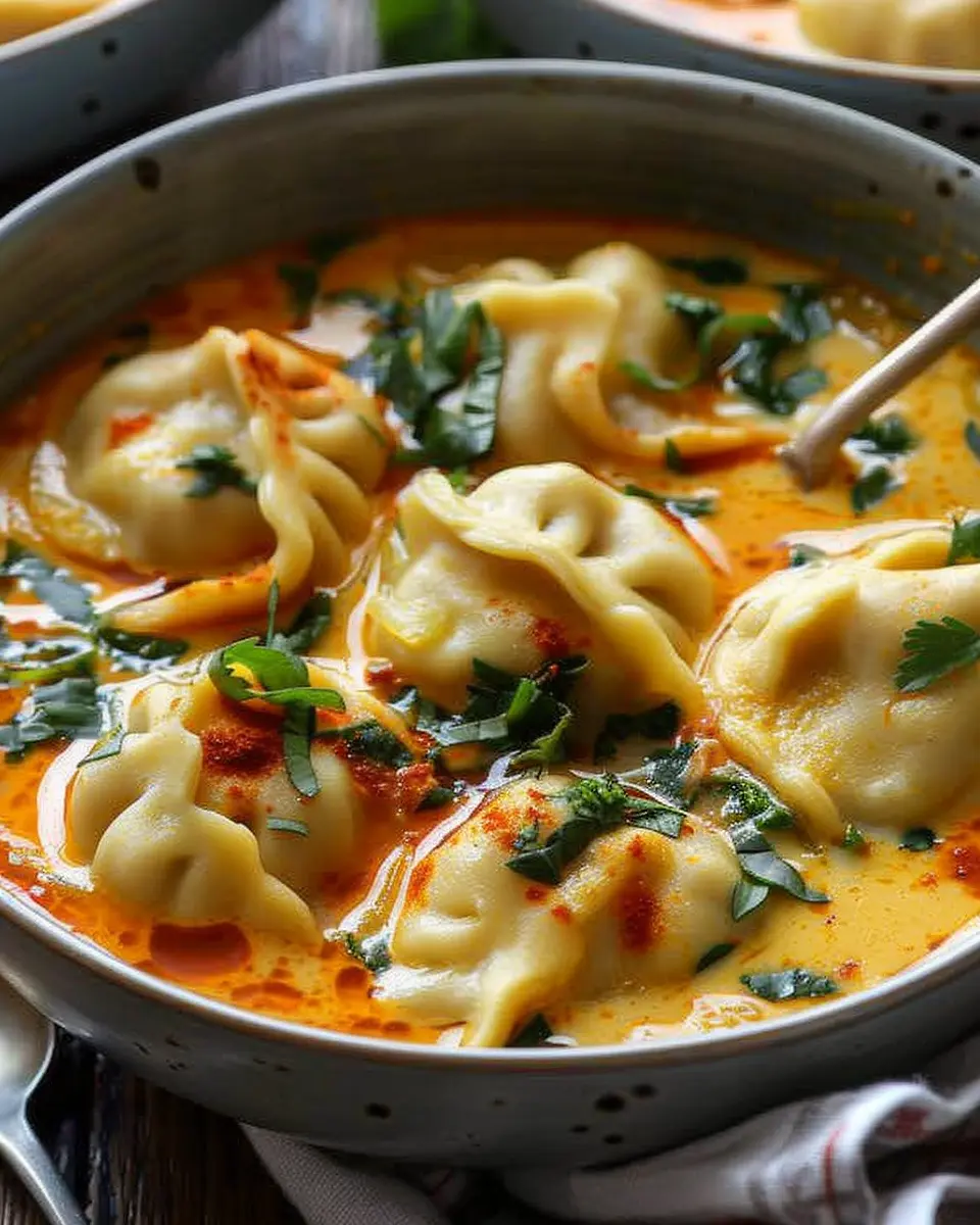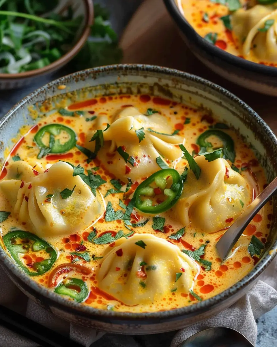Watch as the dumplings absorb the aromatic broth, transforming into delightful little bites packed with flavor. They soak up all those spicy and creamy notes, making each spoonful a cozy delight.