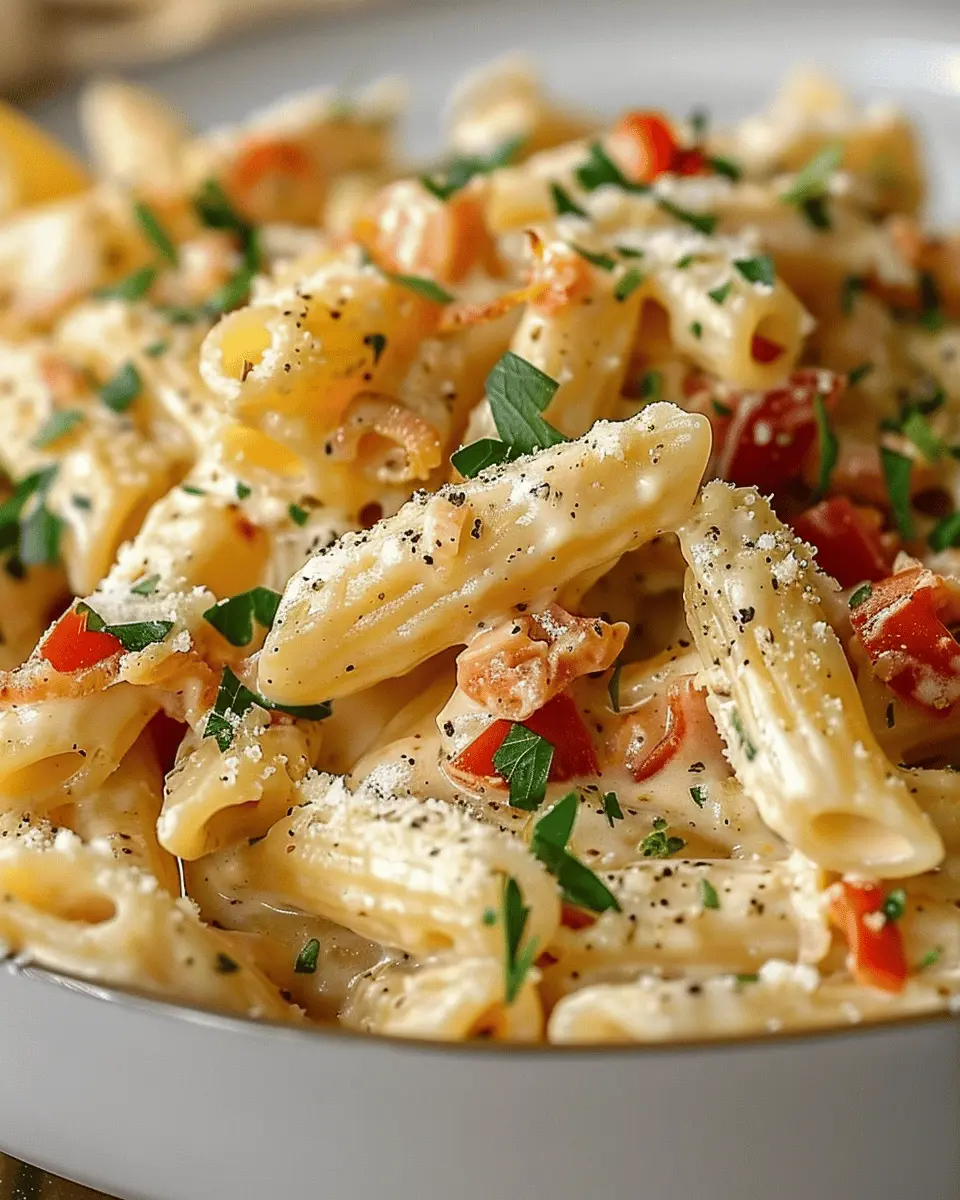PrintRattlesnake Pasta: Indulgent Twist with Turkey Bacon and Chicken Ham