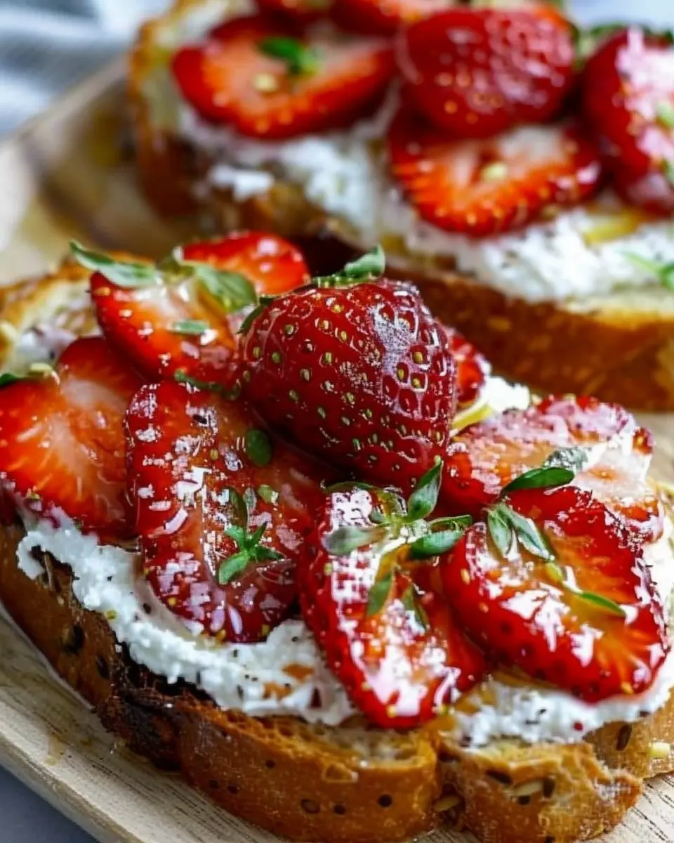 PrintRoasted Strawberry Whipped Ricotta Toast: A Delightful Breakfast Treat