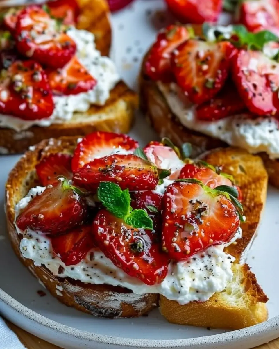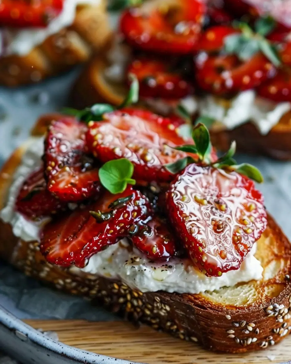 - Top it off with the roasted strawberries, ensuring each toast is loaded with flavor.