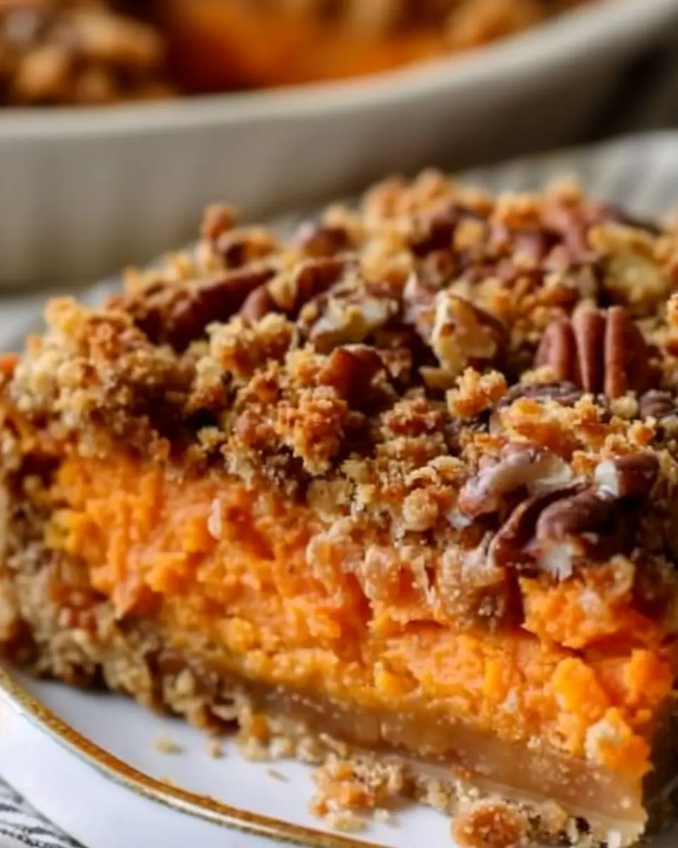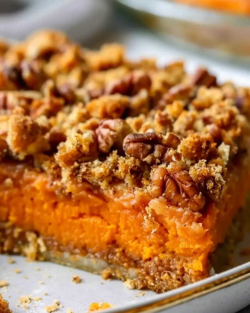 Layering: In a greased 9×13 inch baking dish, spread the sweet potato mixture evenly across the bottom. Next, take your pecan topping and sprinkle it generously over the sweet potato layer. It should hide the orange goodness underneath, promising a delightful surprise when served!