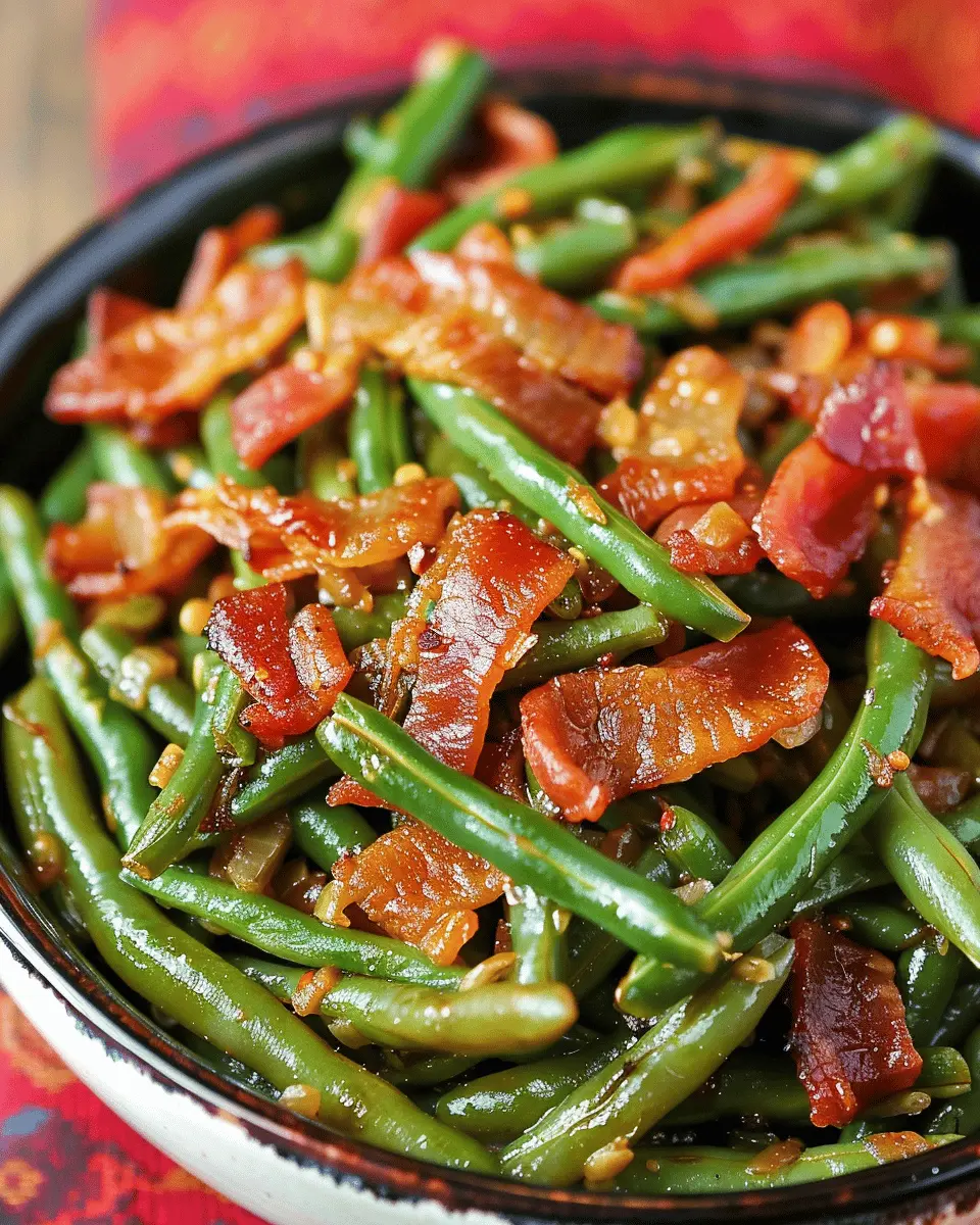 Nutrition Meets Taste: Green beans are nestled in a blanket of flavor while still offering a wealth of nutrients, including vitamins A, C, and K. The addition of lean proteins like turkey bacon also contributes to a balanced meal.