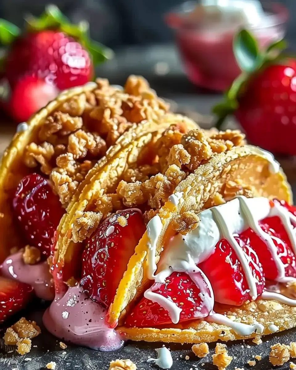 Indulge in these Strawberry Crunch Cheesecake Tacos, a delightful dessert that combines the creamy richness of cheesecake with the fun of a taco.