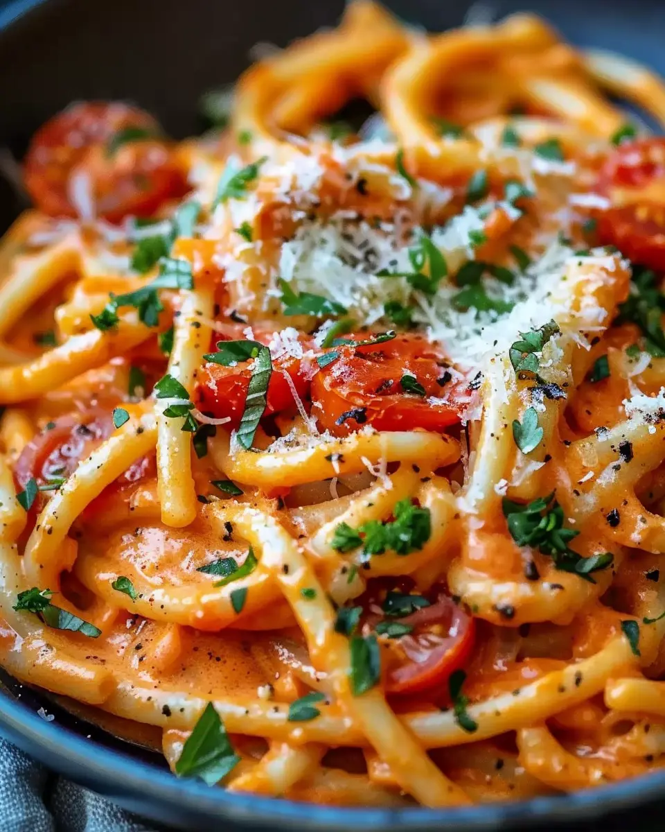 Start by adding a handful of fresh basil leaves on top just before serving. Their aromatic flavor complements the creamy sauce beautifully. Don’t forget to shave some Parmesan cheese over the dish for that extra layer of richness. The contrast of the sharp cheese with the sweet tomatoes is a match made in heaven! Try different varieties of grated cheese like Pecorino Romano for a fun twist.